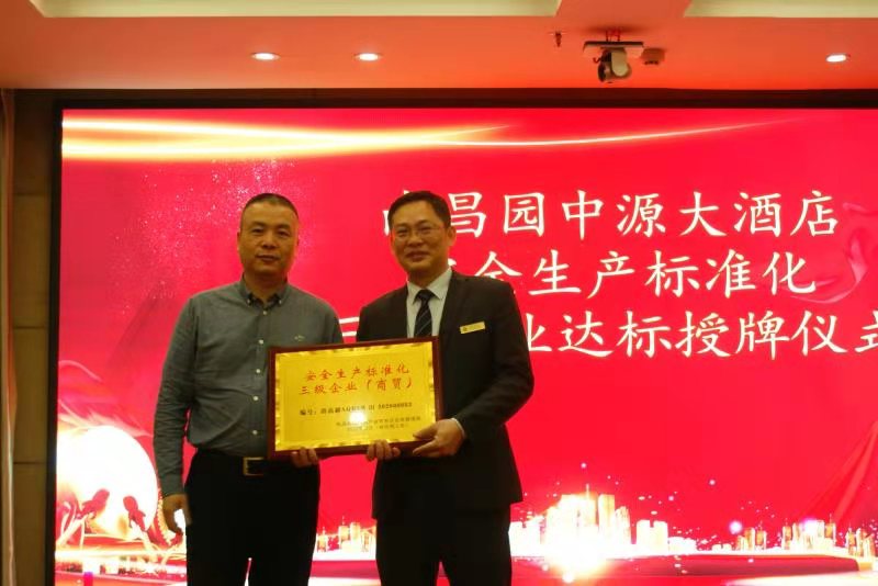 南昌園中源大酒店安全生產標準化三級企業達標授牌儀式